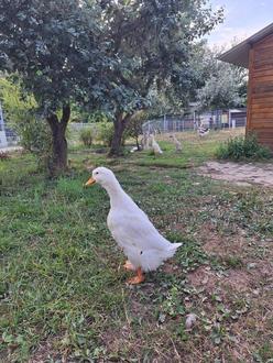 Seit dieser Woche dürfen wir Pekingente Berta bei uns willkommen heißen. Wir freuen uns über den Zuwachs im Enten- und Gänsegehege.