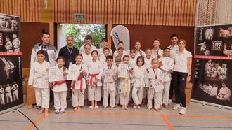 Am vergangenen Samstag, den 05.07.2025, fand der 5. internationale Start 2 Fight Cup, ein packendes und stark besetztes Karate-Turnier, statt. Unsere Wettkampftruppe reiste mit großer Motivation und einer beeindruckenden Teamstärke an – und das mit Erfolg! Besonders spannend: Bei diesem Turnier wagten sich viele unserer Debütanten das erste Mal auf die Kampffläche. Das Start 2 Fight Format stellt besondere Anforderungen an alle Teilnehmenden: Jede Kategorie wird in vier Gruppen unterteilt – je nach Graduierung (niedrig / hoch) und Erfahrungsgrad (Anfänger / Experten). Innerhalb der Gruppen wird nach dem „Jeder gegen Jeden“-Modus gekämpft, sodass nur die Kämpferinnen und Kämpfer mit der stärksten Performance den Einzug in die Platzierungsränge schaffen. Unsere Athletinnen und Athleten zeigten Herz, Technik und Willen – und konnten sich vielfach durchsetzen: Gold ging an Victor Gschwind, Karina Haiduc und Rayan Ziza, die sich mit beeindruckenden Leistungen souverän durch ihre Gruppen kämpften. Kein Punkt wurde verschenkt, kein Kampf leichtfertig abgegeben – diese drei bewiesen, was mentale Stärke, Fokus und Technik bewirken können. Silber sicherten sich Alexander Borgens und Fabio Münch, die sich mit großem Kämpferherz bis ins Finale vorarbeiteten. In beiden Fällen entschied nur eine einzige Flagge (3:2) über Gold und Silber – ein Zeichen für das hohe Niveau und die enge Konkurrenz. Bronze ging an unsere starken Debütanten Nico Touamanidis, Lotta Seidel, Josefine Sparrer und Samuel Gourdial, die auf Anhieb in ihren Gruppen zu überzeugen wussten. Auch Raisa Haiduc holte bei ihrem zweiten Turnier Bronze – eine klare Bestätigung ihrer aufsteigenden Entwicklung. Robin Fürst setzte sich ebenfalls in seiner Kategorie durch und komplettierte die Bronze-Riege. Knapp am Podest vorbei, aber mit einem starken 5. Platz, zeigten sich Tom Wagner und Jonas Kaufmann, beide ebenfalls Turnierdebütanten. Auch Andreas Linder, Marleen Schillinger und Jonas Sieg lieferten beachtliche Leistungen und kämpften sich auf Rang fünf – eine solide Basis für die kommenden Turniere. Besonders erwähnenswert ist auch Mariam Leidner, die sich bei ihrem allerersten Turnier einen respektablen 7. Platz erkämpfte – mit Kampfgeist und positiver Energie, die für die Zukunft viel verspricht. Solche Erfolge sind nur durch ein starkes Zusammenspiel möglich. Deshalb möchten wir uns von Herzen bedanken – bei den Eltern, die mit ihrer Unterstützung, Geduld und Motivation einen enormen Beitrag geleistet haben, bei den Betreuern, die die Kinder und Jugendlichen durch das Turnier begleitet und ihnen Halt gegeben haben, und bei unserem Trainer, Sensei Egor, dessen Vorbereitung den Grundstein für diese Leistungen gelegt hat. Wir sind stolz auf unser gesamtes Team und freuen uns schon auf das nächste Kapitel unserer Wettkampfgeschichte – mit neuen Zielen, neuen Herausforderungen und der gleichen Leidenschaft.