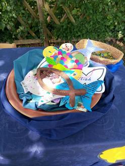 Taufe heißt: Du gehörst zu Gott und damit in die Gemeinschaft aller Gottes-Kinder. Mit unserer Tauferinnerungsfeier am Samstag, den 29. Juni fand bereits der zweite Küken-Kirchen-Gottesdienst statt. Bei sommerlichen Temperaturen feierten wir diesen auf der Wiese um die Kirche. Die Kleinsten unserer Gemeinde haben an diesem Nachmittag erfahren, was es heißt, in einer Gemeinschaft aufgenommen zu sein und dazuzugehören. Bei verschieden Spielstationen konnten Kinder und Erwachsene dies zusammen aktiv erleben: beim gemeinsamen Turmbau, gemeinsamen Wassertransport, beim Getragen-Werden, beim Fische- und Buttons-Basteln. Zum Abschluss gab es neben Getränken, noch Kuchen und andere Leckereien. Vielen Dank für die leckeren Spenden! Die Küken-Kirche richtet sich als Gottesdienst-Angebot besonders an Familien mit Kind/ern von 0-5 Jahren. Sie findet 4 Mal im Jahr statt. Zur Verstärkung unseres Teams suchen wir noch Unterstützung. Nehmen Sie gerne mit dem Protestantischen Pfarramt Kontakt auf! Wir wünschen allen einen schönen Sommer und freuen uns auf die nächste Küken-Kirche am 21. September!