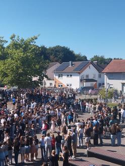 Im neuen Schuljahr 2025/2026 starten 112 Schülerinnen und Schüler in vier komplett gefüllten 5. Klassen an der IGS Rülzheim. Ganz herzlich begrüßt wurden die Neulinge und ihre Angehörigen durch den Schulleiter Stefan Schank in einer bunten Begrüßungsfeier in der kath. Kirche, die sich mit dem Thema „Jeder ist wichtig, zusammen sind wir Klasse!“ beschäftigte. Mit viel Musik wurden die neuen Fünftklässler sowie deren Angehörigen, unter Mitwirkung des Schülerchors der 6. Klassen und der Leitung von Katrin Knoll, sehr ansprechend, abwechslungsreich und herzlich in die Schulgemeinschaft aufgenommen. Wir danken Pfarrer Kolb von der katholischen Kirche wie auch Pfarrer Meckler von der protestantischen Christusgemeinde für ihre tollen Beiträge zu unserer Feier. Im Anschluss zogen die neuen Fünftklässler mit ihren Klassenlehrern in das Schulgebäude ein. Dort wurden sie unter Beifall der Schulgemeinschaft herzlich empfangen. Nachdem die Eltern die Klassenräume im Neubau inspiziert hatten, konnten sie sich im Elterncafé in der Mensa, welches der Förderverein organisiert hatte, stärken. Wir wünschen den neuen Schülerinnen und Schülern einen guten Start sowie erfolgreiches Arbeiten an unserer Schule.