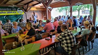 Am 25. August konnten wir wieder unser jährliches Sommerfest im Männerchorhäuschen auf dem Festwiesengelände veranstalten. Der Wettergott meinte es wieder gut mit uns und bescherte uns heiße Temperaturen. Nachdem wir um 11:00 Uhr starteten, begrüßte unser 1. Vorsitzende Bernd Dreyer die knapp 60 anwesenden Mitglieder und Helfer mit einer kurzen Rede. Danach wurde geplaudert, gelacht und reichlich getrunken und gegessen. Es gab wie immer ein üppiges Grillbuffet, mit Salaten, Soßen, Spießbrocken, Würstchen und Steaks. Und für die Naschkatzen im Anschluss Kaffee und Kuchen. Vielen Dank an dieser Stelle nochmals an alle für die Salat- und Kuchenspenden! Dank der gut gelaunten Anwesenden und des unermüdlichen Einsatzes von Familie Rund war das Sommerfest wieder ein rundum gelungenes Ereignis, an dem wir gerne festhalten! Achtung Terminankündigung! Wir spielen nächstes Jahr an folgenden Terminen wieder Theater in der Dampfnudel: 05./06./11./12. April 2025. Merkt euch die Tage schonmal vor!
