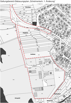 Der Geltungsbereich der Bebauungsplan-Änderung umfasst den gesamten Geltungsbereich des Bebauungsplanes „Schelmenlach“ aus dem Jahr 2016 und ergibt sich aus dem beigefügten Lageplan.