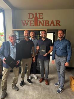 Einen edlen Tropfen in entspannter Atmosphäre und bei guten Gesprächen genießen: Das können Gäste künftig in der Weinbar von Maximilian Brechtel und Marc Socher im Gutenbergcenter Rülzheim. Das kleine, aber feine Lokal ist immer mittwochs und donnerstags von 17 bis 22 Uhr sowie freitags bis sonntags von 15 bis 22 Uhr geöffnet. Auf der Karte stehen hauptsächlich Weine aus der Pfalz und aus Italien. „Die Südpfalz gilt als Toskana Deutschlands, da war das naheliegend“, sagt Brechtel. Zudem gibt es insbesondere für Rotwein eine Raritätenkarte mit französischen und spanischen Weinen mit Jahrgangstiefe. Wem der Sinn eher nach Bier oder einem Aperol steht, wird in der Weinbar ebenfalls fündig. Dazu gibt es frisches Maisbaguette mit Olivenöl und anderes Fingerfood. Die Idee zur Weinbar kam dem Duo bei einem gemeinsamen Abendessen: „Wein ist unsere Leidenschaft und wir haben da eine Nische gesehen, weil es sowas in Rülzheim und Umgebung nicht gibt. Nachdem Marc einen neuen Job hat, wurden die Räumlichkeiten, die er vorher für seine Versicherungsberatung genutzt hat, frei. Also haben wir uns gedacht, wir machen das selbst“, erklärt Brechtel. Theo Dreyer, Beigeordneter für Wirtschaft und Tourismus der Verbandsgemeinde, Ortsbürgermeister Michael Braun und der bei der Ortsgemeinde für Wirtschaft und Verkehr verantwortliche Beigeordnete Michael Bahlinger gratulierten zur Eröffnung und wünschten viel Erfolg: „Mit der Weinbar gibt es in Rülzheim ein weiteres Angebot für die Bevölkerung, abends zusammenzukommen und bei einem Gläschen Wein ein paar schöne Stunden zu verbringen“, so Braun und Bahlinger. Dreyer ergänzte: „Damit wird die gastronomische Landschaft unserer Verbandsgemeinde um eine neue Facette reicher, das freut uns.“