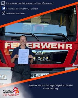 Sophie Dannenmaier (Einheit Leimersheim) hat im Zeitraum vom 01.09. bis 03.09. das Seminar Unterstützungstätigkeiten für die Einsatzleitung am LfBK in Koblenz besucht. Bei Einsätzen größeren Umfanges ist die Unterstützung von Führungseinheiten und Führungseinrichtungen notwendig und sinnvoll. Führungshilfspersonal sind Einsatzkräfte, die in den Führungseinheiten und Führungseinrichtungen als Sprechfunker, Fernsprecher, Einsatztagebuch- oder Lagenkartenführer sowie für vergleichbare Tätigkeiten eingesetzt werden. Im Rahmen des Seminars werden die Möglichkeiten zur Umsetzung der Vorgaben aus der DV 100, der taktischen Zeichen und der FüRi-RLP aufgezeigt und in praxisgerechte Übungen umgesetzt. Weitere Themen waren Kommunikation und Informationsfluss im Führungsdienst und Anwendung von Kommunikations- und Informationsmitteln. Unsere Kameradin hat das Seminar erfolgreich abgeschlossen.