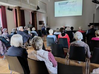 Am Mittwoch, den 10. September 2025, fand im CKK die Informationsveranstaltung „Schlaganfall & Hausnotruf – Schnell handeln, sicher leben“ statt. Zahlreiche Interessierte waren der Einladung gefolgt, um sich über zwei wichtige Gesundheitsthemen zu informieren. Zu Beginn begrüßte die Seniorenbeauftragte Ingrid Mendel die Gäste herzlich und übergab das Wort an den Referenten des Nachmittags, Marc Sickelmann. Der erfahrene Rettungssanitäter, Heilpraktiker und Verwaltungsmitarbeiter konnte nicht nur mit fundiertem Fachwissen, sondern auch mit anschaulichen Beispielen und persönlichen Erlebnissen aus seiner langjährigen Praxis überzeugen. Im ersten Teil der Veranstaltung stand der Schlaganfall im Mittelpunkt. Sickelmann erklärte anschaulich, wie ein Schlaganfall entsteht, welche Ursachen zugrunde liegen können und welche Symptome auf einen Notfall hindeuten. Er betonte die Bedeutung des schnellen Handelns und schilderte, welche Maßnahmen der Rettungsdienst vor Ort einleitet. Besonders eindrücklich war der Hinweis auf Risikogruppen und Risikofaktoren, die jeder für sich im Blick behalten sollte. Nach einer kurzen Pause folgte das zweite Thema des Nachmittags: „Hausnotruf – Kleiner Knopf mit großem Nutzen“. Sickelmann erläuterte, warum ein Hausnotrufsystem insbesondere für ältere Menschen sinnvoll ist, welche Funktionen es bietet und welche unterschiedlichen Systeme es gibt. Auch Fragen zu Kosten und den Leistungen der Pflegekasse wurden verständlich beantwortet. Zum besseren Verständnis hatte der Referent verschiedene Geräte mitgebracht, die von den Teilnehmerinnen und Teilnehmern interessiert begutachtet wurden. Die zahlreichen Fragen aus dem Publikum zeigten das große Interesse am Thema. Zum Abschluss dankte die Seniorenbeauftragte dem Referenten für den informativen und praxisnahen Vortrag und gab einen Ausblick auf die kommenden Veranstaltungen der Reihe. Am 24.09.2025 wird es um die elektronische Patientenakte gehen, und am 12.11.2025 konnten wir Herrn Dr. Immendörfer (HNO-Arzt) für einen Vortrag zu Schwindel und Hörproblemen im Alter gewinnen. Die Veranstaltungsreihe zeigt: Aufklärung, Prävention und praktische Hilfen sind zentrale Bausteine, um im Alter selbstbestimmt und sicher leben zu können.