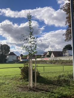 Nachdem leider eine sehr große schattenspendende Kastanie am Beachvolleyballfeld gefällt werden musste, wurden wir am Abend immer von der tiefstehenden Sonne geblendet. Und die „Zahnlücke“ in der Baumreihe sah auch nicht gut aus. Somit haben wir beschlossen, nicht nur in unsere Turnjugend, sondern auch in die Dorfbegrünung zu investieren. Der TGV spendete diese Winterlinde und ließ sie in der letzten Woche pflanzen. Das mit dem Schatten wird vermutlich noch ein bis zwei Wochen dauern, aber wir sind guter Hoffnung. Vielen Dank auch an Michael Wolf für die fachkundige Unterstützung.