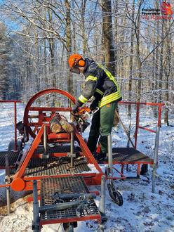 Am Wochenende vom 19.-21.01. nahmen zwei Kameraden unserer Verbandgemeinde am Kettensägenlehrgang in Büchelberg teil. In Theorieeinheiten am Freitag und Sonntag wurden Inhalte wie die Unfallverhütungsvorschriften, die persönliche Schutzausrüstung und diverse weitere Themen rund um das Bedienen einer Kettensäge im feuerwehrtechnischen Bereich vermittelt. Am Samstag ging es für die Teilnehmer dann in den Wald, wo sie die neu erworbenen Kenntnisse auch praktisch anwenden durften. Dabei wurden verschiedene Schnitttechniken an einem mobilen Spannungssimulator geübt. Am Sonntag fand dann auch eine theoretische Prüfung statt. Am Lehrgang teilgenommen und die Prüfung erfolgreich bestanden haben Luca Schuhmann (Einheit Hördt), sowie Stefan Klingenfuß (Einheit Leimersheim).