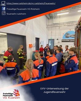 Bei der gestrigen Jugendfeuerwehr-Übung stand die jährliche UVV-Unterweisung auf dem Programm. Gemeinsam schaute sich die Gruppe die persönliche Schutzausrüstung an. Außerdem wurden auch spezielle Formen der Schutzausrüstung, wie beispielsweise der Chemikalienschutzanzug oder Schnittschutzkleidung, beleuchtet. Anhand von Dummys wurden verschiedene Unfallszenarien dargestellt. Die Jugendlichen hatten anschließend die Aufgabe zu erkennen, was in diesen Szenarien gegen die UVV-Vorschriften verstößt, und zu erklären, wie man in solchen Situationen richtig handelt.