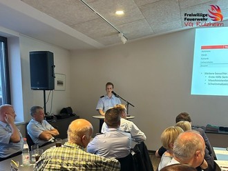 Der stellvertretende Wehrleiter Matthias Serr führte die Zahlen der vergangenen Einsätze, Übungen sowie die Altersstruktur und Stärke der Mannschaft auf. Danach folgte der Bericht des Drohnen-Einsatz-Teams und die Verabschiedung des Leiters des Teams, Christian Schöneich. Darauf folgten die Jahresberichte der Grundausbildung und Jugendfeuerwehr.