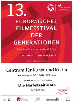 Bereits zum dreizehnten Male findet in der Metropolregion Rhein-Neckar das Europäische Filmfestival der Generationen statt. In diesem Jahr nimmt der Südpfalz-Tourismus Verbandsgemeinde Rülzheim e.V. zum achten Mal an dieser Veranstaltung teil. Während der Festivalwoche wird am Mittwoch, den 19. Oktober 2022, ab 17:00 Uhr der Kinofilm „Die Herbstzeitlosen“, im Centrum für Kunst und Kultur in Rülzheim gezeigt. Das Besondere an dieser Filmreihe sind die Publikumsgespräche, die am Ende jeder Filmvorführung stattfinden, u.a. mit Frau Dr. phil. Sonja Ehret vom Institut für Gerontologie der Universität Heidelberg. Valkana Krstev von der Kreisverwaltung Germersheim und Josi Pitz der Seniorenbeauftragte aus Kuhardt vervollständigen die Expertenrunde. Das Thema des Filmfestivals in diesem Jahr beschäftigt sich mit Altern als Transformationsprozess, Altersbilder. Zum Film: Martha führt einen kleinen Dorfladen im idyllischen Trub, in der Schweiz. Doch nach dem Tod ihres Mannes hat sie nur noch wenig Freude am Leben. Ihre Freundinnen ermuntern sie, sich endlich ihren lang gehegten Traum einer eigenen Dessous-Boutique zu erfüllen. Mit der Ladeneröffnung sorgt Martha für das Dorfgespräch, zumal ihr Sohn Walter als Dorfpfarrer moralische Bedenken gegen den Reizwäschetempel hat. Doch Martha mag nicht mehr dem traditionellen Verhaltenskorsett ihrer Umwelt entsprechen, stattdessen beginnt sie couragiert und mit viel Elan ihre eigenen Vorstellungen und Wünsche vom Alter in die Tat umzusetzen. Die liebenswerte Komödie über vier innovationsfreudige Rentnerinnen ist bis heute in der Schweiz der zweiterfolgreichste Film. Altersempfehlung: ab 12 Jahren.