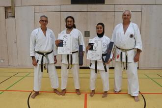 Unsere Dan - Anwärter fieberten dem Prüfungstermin am 08.10.2022 mit intensiven Vorbereitungen über mehrere Monate wöchentlichem Zusatztraining entgegen. Verschiedene Katas, sowie Bunkai und Kumite stehen zur Auswahl und müssen je nach Anweisung der Prüfer vorgeführt werden. Die Prüflinge kennen zwar neben der Kata und der Bunkai, die sie für sich zur Prüfung ausgesucht haben, die Auswahl der Katas, die sie zusätzlich können müssen, jedoch nicht die Auswahl der Prüfer. Wir bedanken uns bei den beiden Prüfern Andra Ziza von der SKA Rülzheim und Bernd Drechsler vom PSV Ludwigshafen. Herzlichen Glückwunsch an Begüm-Sueda Has und Bilal Rahal Aboussaad und gratulieren unseren Karatekas zu den erfolgreich abgeschlossenen Prüfungen zum 1. Dan.