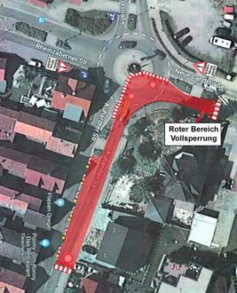 Vollsperrung: Teilbereich Friedhofskreisel, Kuhardter Straße in den Kreisel einfahrend und Kreiselast Einmündung in die Neue Landstraße, siehe Lageplan