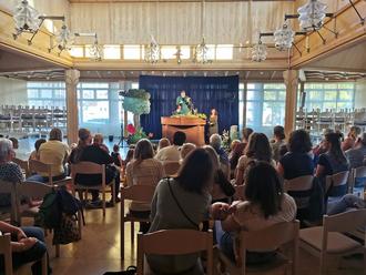 Am 11. Oktober war das Dornerei-Puppentheater aus Neustadt zu Gast im Pfarrheim in Rülzheim. Etwa 100 Personen waren der Einladung der KÖB Rülzheim gefolgt und hatten großen Spaß an der kurzweiligen Darbietung des Ehepaares Dorner, das nicht nur die Puppen zum Leben erweckte, sondern selbst als „Frau Wiese“ und „Herr Müller“ in dem Spiel mitwirkte. Es war zu spüren, dass die meisten Zuschauer*innen das Buch kennen, denn man konnte beobachten, dass manchmal die Kinder und die Mamas die gereimten Textstellen aus dem Buch mitgesprochen haben. Alle fieberten mit, wenn Superwurm seine Freunde aus Notlagen befreite, und natürlich erst recht, als er selbst in Not geriet, weil ihn die Echse verzaubert hatte. Aber wer selbst anderen hilft, wird auch Hilfe erfahren, wenn er sie braucht. Dem Ehepaar Dorner gelang es - mit einer wunderschönen Bühnendekoration und mit kindgerechten Dialogen, mit Lichteffekten und Musik - dem bekannten Kinderbuch von Axel Scheffler Leben einzuhauchen. Die Darbietung war absolut begeisternd und hat die Kinder bis zuletzt gefesselt und ein Strahlen auf die Gesichter gezaubert – auch bei den Erwachsenen. Wir bedanken uns herzlich für die finanzielle Unterstützung durch Laproft (Landesverband professioneller freier Theater Rheinland-Pfalz e.V.) und die Büchereifachstelle Speyer.