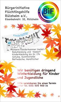 Am 28.9. war es soweit: Ein großer Kleiderbasar fand anläßlich der Eröffnung der Wintersaison der Kleiderkammer statt. Ort des Geschehens war der Hof der Eisenbahnstr. 32, dort, wo die Kleiderkammer der Bürgerinitiative Flüchtlingshilfe Rülzheim ‚zu Hause‘ ist. Im Laufe des Vormittags und frühen Nachmittags kamen viele Interessenten, um sich für ihren Bedarf etwas herauszusuchen. Am Ende konnten mehr als 40 Personen, vor allem Kinder, passend eingekleidet werden. Das ist ein großer Erfolg und zeigt, wie gut die Kleiderkammer sortiert ist und wie routiniert und professionell das Team um Kleiderkammer-Chefin Michaela Geiger den Basar vorbereitet hatten. Neben Kleidern waren auch Geschirr, Vorhänge, Tischdecken, Kissen, Bettwäsche, Handtücher, Leuchtmittel und kleine E-Geräte abzugeben. Mit einem solchen Großevent hat sich natürlich der Bestand gewaltig gelichtet, dies im besonderem bei der Winterkleidung für Kinder und Jugendliche. Wie in der Vergangenheit, ist die Kleiderkammer hierbei auf Ihre Kleiderspenden angewiesen. Auch Wäsche und Textilien, wie oben genannt, sind willkommen. Schon jetzt bedankt sich das Team der BiF Kleiderkammer ganz herzlich für Ihre Spende. Achten Sie auch auf die nächsten Öffnungstermine, die in Kürze an dieser Stelle veröffentlicht werden.
