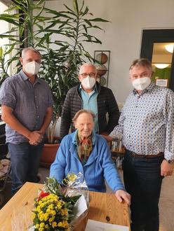 Im Kreise ihrer Familie feierte Erika Röller am Donnerstag, 20. Oktober, ihren 102. Geburtstag. Auch Stiftungsratsvorsitzender Reiner Hör, Geschäftsführer Wolfgang Kuhn und Einrichtungsleiter Hans-Peter Schulz gratulierten. Die Jubilarin ist trotz ihres hohen Alters bei bester Verfassung – und kann mit 102. Jahren noch immer auf Hilfsmittel wie Hörgerät oder Brille verzichten, so dass sie Geschenke wie Romanhefte problemlos genießen kann. Bedauerlich findet sie nur, dass sie sich mit einem Teil der Bewohner*innen mehr austauschen kann, da sie an Demenz erkrankt sind. So erhält die Lektüre manchmal den Vorzug gegenüber anderen Freizeitangeboten. Alle Beteiligten würden sich freuen, wenn sie im nächsten Jahr zum 103. Geburtstag gratulieren könnten.