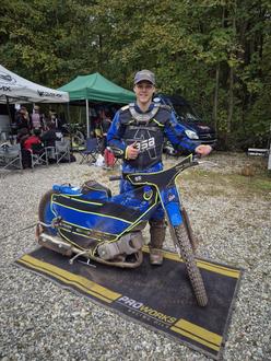Am vergangenen Sonntag stand im Rahmen des „Goldenen Bands der Stadt Olching“ das nächste Rennen zur SBM-Serie auf dem Programm. Bei bestem Rennwetter und spannender Kulisse zeigte Tim Arnold eine insgesamt solide Leistung und sicherte sich mit sieben Punkten den dritten Platz des Tages – ein ordentliches Ergebnis, auch wenn der ehrgeizige Nachwuchsfahrer selbst noch deutliches Steigerungspotenzial sieht. Bereits im Training zeichnete sich ab, dass Tim gut aufgelegt war. Einzig die Starts machten dem jungen Fahrer etwas zu schaffen – ein Thema, das sich leider auch im ersten Lauf bemerkbar machte. Dort kam er nur als Dritter aus der ersten Kurve und konnte diese Position bis ins Ziel nicht mehr verbessern. Ein Punkt zum Auftakt. Im zweiten Lauf zeigte er dann, was möglich ist: Nach einem deutlich besseren Start fuhr er souverän einen Start-Ziel-Sieg ein und holte sich verdient die vollen drei Punkte. Auch im dritten Durchgang gelang zunächst ein guter Start, doch die Entscheidung für die innere Linie in der zweiten Kurve erwies sich als unglücklich. Tim musste zwei Kontrahenten passieren lassen und kam erneut als Dritter ins Ziel – ein weiterer Punkt. Im letzten Lauf gelang erneut ein starker Start, diesmal konnte er die Position behaupten und fuhr als Zweiter über die Ziellinie, zwei wichtige Zähler für die Gesamtwertung. Mit insgesamt sieben Punkten reichte es am Ende des Tages für den dritten Platz auf dem Podium. „Das ist schon ganz okay, aber da ist definitiv noch Luft nach oben“, lautete das nüchterne Fazit des jungen Fahrers. Sein besonderer Dank galt seinem Vater und Alex, die sich erneut als engagierte Mechaniker um das Material kümmerten. Mit diesem Ergebnis bleibt Tim in der Gesamtwertung weiterhin gut im Rennen und zeigt, dass mit etwas Feinschliff an den Starts künftig noch mehr drin ist