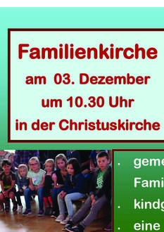 | 10:30 Uhr | Familienkirche, Pfarrer Jan Meckler und Team der Familienkirche |