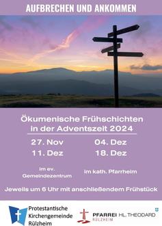 | Rülzheim | 06:00 Uhr | Ökumenische Frühschicht in der Adventszeit mit anschließendem Frühstück (Katholisches Pfarrheim) | ||