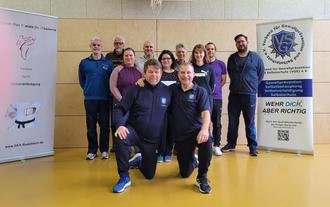 Auf Bitten unserer Unterstützerin (Mama eines Karatekindes), Frau Jessica Wankmüller, führten wir am Samstag, den 25.11.2023 eine intensiven Selbstbehauptungskurs durch. Frau Wankmüller hat den Teilnehmerkreis selbst organisiert. Für unser SV Trainerteam, Markus Schmock und Volker Albrecht, war es eine Selbstverständlichkeit und eine Freude, den Kurs durchführen zu dürfen. Es wurden die Grundzüge der Gewaltprävention und der Selbstbehauptung geübt. Da uns nur 4 Stunden Trainingszeit zur Verfügung standen, konzentrierten wir uns auf die wesentlichen Punkte der beiden Themengebieten. Durch Einhaltung verschiedener Verhaltensweisen, wie die Beobachtung des Umfeldes und Abwägung von Gefahrensituationen lassen sich viele Risiken abwenden. Sicheres Auftreten kann ebenfalls potenziellen Gefährdern die Motivation für eine Belästigung nehmen. Als finale Maßnahme, sich bei kritischen Situationen zu helfen, wurden dann konkrete Lösungen zur Abwehr von Angriffen gezeigt und auch geübt. Den Teilnehmern wollen wir für das gezeigte Engagement danken. Es war offensichtlich, dass sie Spaß an der Veranstaltung hatten. Von unserer Seite steht einem Nachfolgelehrgang nichts im Wege.