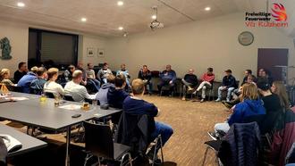Am Freitag, 20.01.2023 durften 38 Wehrleute aus der gesamten Verbandsgemeinde Heiner Butz in unserer Übung willkommen heißen. Schon einige Jahre ist Heiner landkreisübergreifend in der psychosozialen Notfallversorgung tätig und eine immerwährende Stütze der Feuerwehr. Ziel der Übung war es Möglichkeiten und Perspektiven darzubieten, die den Einstätzkräfte im Umgang mit belastenden Einsätzen Unterstützung bieten können. Bei einem lockeren Austausch wurde anhand selbst berichteter Erfahrungen diverse Elemente einer Schockreaktion besprochen. Zudem hatte man über die verschiedenen Bewusstseinslagen gesprochen, die auch bei indirekter Konfrontation oder persönlicher Beziehung zum Einsatzort /den beteiligten Personen entstehen können. Aufgrund der Zusammensetzung der Gruppe aus bereits erfahrenen Kameradinnen und Kameraden, sowie Teilnehmer der Grundausbildung bekam die Übung schnell eine Eigendynamik. Während über bereits gemachte Erfahrungen und dem persönlichen Umgang damit gesprochen wurde, bekamen unsere neueren Mitglieder, so Zitat: „einen ganz neuen Einblick in die Möglichkeiten, die man hat“. Am Ende der Übung blickten die Kameradinnen und Kameraden gestärkt in die Zukunft. Die Gewissheit, dass die Kameraden und andere Organisationen wie die psychosoziale Notfallversorgung #immerda sind schafft Vertrauen und Sicherheit um Umgang und der Bewältigung mit belastenden Ereignissen. An dieser Stelle möchten wir uns herzlich bei Heiner Butz für die Übung aber auch die immerwährende Unterstützung bedanken!
