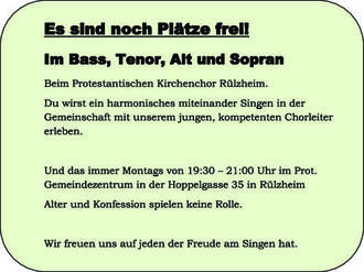 19:30 Uhr Probe des Kirchenchors im Gemeindezentrum