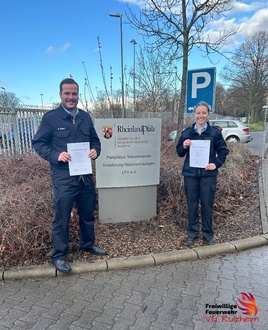 Letzte Woche nahmen unsere Kamerad*innen Sophie Dannenmaier (Einheit Leimersheim) und Florian Rösel (Einheit Rülzheim) jeweils an Lehrgängen an der Feuerwehr- und Katastrophenschutzakademie teil. Sophie Dannenmaier besuchte den Lehrgang zum Jugendfeuerwehrwart. Die Ausbildung zum Jugendfeuerwehrwart vermittelt Grundkenntnisse für die Leitung einer Jugendgruppe innerhalb der Feuerwehren. Wichtige Lehrgangsthemen waren hier Rechte und Pflichten in der Jugendarbeit, Vielfalt und Chancengleichheit sowie ein Vortrag zum Versicherungsschutz der Unfallkasse. Florian Rösel besuchte den Lehrgang für FEZ- Personal. Im Rahmen des Lehrgangs werden die möglichen Führungsmittel einer FEZ vorgestellt und ihre Anwendung in Form von praxisgerechten Übungen umgesetzt. Themen sind hier unter anderem rechtliche Grundlagen, Bedienung von Kommunikations- und Informationsmitteln sowie das Beschaffen, Empfangen und Sammeln von Informationen. Wir gratulieren unseren beiden Kamerad*innen zum bestandenen Lehrgang!