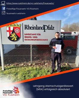 Lucas Leibach (Einheit Rülzheim) absolvierte vom 19.01. bis 22.01.2026 erfolgreich die Ausbildung zum Atemschutzgerätewart für Geräte der Firma MSA. Im Rahmen des viertägigen Lehrgangs wurden die Teilnehmenden für die fachgerechte Wartung, Instandsetzung, Pflege und Prüfung von Atemschutzgeräten geschult. Neben den rechtlichen Grundlagen wurde ebenfalls der Umgang mit Mess- und Prüfgeräten vermittelt. Des Weiteren erhielten die Teilnehmenden eine ausführliche Einweisung in den Aufbau und die Wirkungsweise von Atemschutzgeräten. In praktischen Übungseinheiten wurden die Teilnehmenden in die Prüfung, Wartung und Reparatur der Atemschutzgeräte eingewiesen. Ebenso wurden die Bedienung und Kontrolle von Atemluftkompressoren sowie die notwendigen Kenntnisse zum sicheren Füllen von Druckgasbehältern für Atemluft vermittelt. Lucas absolvierte sowohl die theoretische als auch die praktische Prüfung mit Erfolg. Wir gratulieren herzlich zum bestandenen Lehrgang!