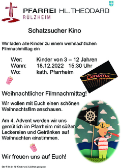 Rülzheim, 15:00 Uhr Kinderkrippenfeier, die Kinder bringen ihre Missionsopfer zur Krippe (im Pfarrzentrum); 17:00 Uhr Christmette (im Pfarrzentrum)