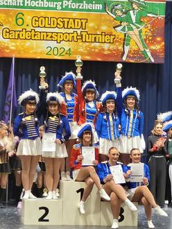 Zum letzten Qualifikationsturnier für 2024 reisten unsere Turniergruppen nach Pforzheim in die Jahnhalle. Erneut waren alle Altersklassen vertreten. Die Krönchen- und Princessgarde sind schon ein wenig erfolgsverwöhnt und platzierten sich am 2. Adventssamstag wiederum auf den Podestplätzen. 412 Punkte und der 2. Platz waren es im Gardetanz, 437 Punkte im Schautanz bedeuteten den Sieg für die jüngsten Tänzerinnen. Die Junioren lieferten mit zwei 2. Plätzen, 427 und 443 Punkten ebenso eine ausgezeichnete Leistung ab. Unsere Emma-Lina ertanzte sich bei den Mariechen einen tollen 4. Platz mit 421 Punkten. Am Sonntag gelang unserer Royalgarde ein überzeugender Auftritt im Gardetanz: mit 438 Punkten erreichten sie den 3. Platz verbunden mit der Qualifikation zu den Süddeutschen Meisterschaften in Saarbrücken. Die Freude und der Jubel darüber waren bei allen Aktiven, Trainerinnen und Fans riesig. Der Schautanz klappte danach auch gut und mit 424 Punkten und dem 4. Platz ging das letzte Turnier in 2024 für alle Beteiligten sehr erfolgreich zu Ende. Wir freuen uns schon jetzt auf die Badisch-Pfälzischen Meisterschaften in Bellheim am 18. und 19. Januar und sind stolz auf die Turnierbilanz in diesem Jahr. Allen unseren Mitgliedern, Freunden und Sponsoren wünschen der geschäftsführende Vorstand Nicole Kupper und Christoph Wünschel, die Bereichsvorstände und der gesamte Ausschuss ein frohes Weihnachtsfest, einen guten und gesunden Rutsch ins neue Jahr und ein glückliches Wiedersehen in 2025.