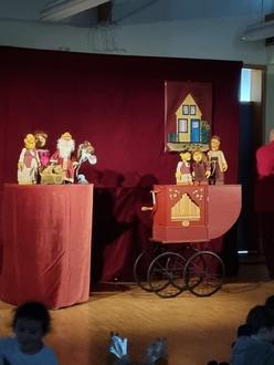 Am Freitag, den 13. Dezember besuchte uns das Chauseetheater mit dem Stück „Die drei Wünsche“ im Kindergarten. In dem Theaterstück geht es um den Weihnachtsmann, der alle Geschenke verteilt und alle Wünsche erfüllt hat. Geschafft ist auch der Weihnachtsmann nach seiner anstrengenden Tour. Eine warme Mahlzeit und ein Bett zum Schlafen täten ihm gut. Doch der reiche Mann glaubt nicht an den Weihnachtsmann, hält ihn für einen Strauchdieb und jagt ihn wütend fort. Sein armer Nachbar aber nimmt den Erschöpften bei sich auf. Dafür gewährt ihm der Weihnachtsmann zum Dank drei Wünsche, die dieser mit Bedacht wählt. Das macht wiederum den reichen Mann und seine Frau sehr neidisch. Das interaktive Theaterstück begeisterte unsere Kindergartenkinder und uns Erzieherinnen. Wir bedanken uns bei Herrn Billy Bernhard für das wunderschöne weihnachtliche Stück.