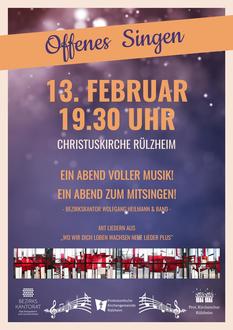 19:30 Uhr Offenes Singen für alle im Gemeindezentrum, nähere Informationen auf unserem Plakat