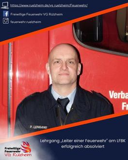 Patrick Leingang stellv. Wehrführer der Einheit Rülzheim, absolvierte vom 27.01. bis 31.01. den Lehrgang „Leiter einer Feuerwehr“ online unter der Leitung des Landesamtes für Brand- und Katastrophenschutz Rheinland-Pfalz. Ziel des Lehrgangs ist es, Wissen rund um die Organisation einer Feuerwehr und deren Haushaltswesen zu erlangen. Dabei spielen Themen wie Beschaffungen, Personalplanung und -führung, sowie Öffentlichkeitsarbeit eine zentrale Rolle. Nach den zahlreichen Einheiten folgte dann die Prüfung, welche Patrick mit Erfolg gemeistert hat. Herzlichen Glückwunsch zum bestandenen Lehrgang!