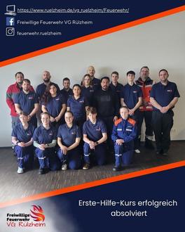 Am Wochenende fand im Gerätehaus der Einheit Rülzheim der Erste- Hilfe- Kurs statt. Teilnehmer waren Kamerad*innen unserer Grundausbildung und Jugendfeuerwehrler, die dieses Jahr 16 Jahre alt werden und somit in die Aktive Wehr übergehen. Am Samstag und Sonntag wurden in Theorie und Praxis verschiedene Themen wie Wundversorgung, Ausfall von lebenswichtigen Funktionen und allgemein die Versorgung von Verletzten bei Unfällen behandelt. Am Sonntag durften dann alle Teilnehmer eine Abschlussübung absolvieren. Wir bedanken uns herzlich beim DRK für das Vermitteln des Wissens! Wir gratulieren herzlich: Felix Ruf, Matthias Knobloch (Einheit Hördt) Fabian Götz (Einheit Kuhardt) Marc Buntrock, Roberto Edgardo Sanchez Cienfuegos, Maria de Los Angeles Ramos Villegas, Silvia Elizabeth Hernandez Martinez (Einheit Leimersheim) Thomas Göbel, David Haller, Eva Müller, Christian Müller, René Schenk (Einheit Rülzheim)