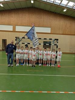 Mit toller Musik zum großen Einlauf startete das Spiel. Alle Kinder waren gut gelaunt und motiviert. Am Anfang war die Manndeckung noch nicht gut genug, doch im Laufe des Spiels wurde die Abwehr immer besser. So konnten viele Bälle erobert und schöne Tore erzielt werden. Auch wenn man bei manchen die Müdigkeit sehen konnte, kämpften alle bis zum Schluss. Dabei waren: Karoline, Hannes, Ben, Luca, Leon, Levi, David, Enzo, Vincent, Mia und Taio. Es war ein spannendes Spiel und eine tolle Teamleistung. Super gemacht, Tigers!