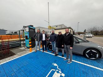 Eine Schnellladesäule mit bis zu 300 Kilowatt Leistung steht auf dem Parkplatz neben dem Gebäude der Thüga-Netze am Gaswerk in Rülzheim. Dort können E-Autos mit Ökostrom aufgeladen werden. Mit dem Hypercharger-System der Firma Alpitroic können E-Autos in 20 Minuten von 20 auf 80 Prozent ihrer Kapazität aufgeladen werden. Wenn beide Ladepunkte gleichzeitig in Betrieb sind, wird die Ladeleistung auf die Fahrzeuge verteilt und halbiert sich. Bürgermeister Matthias Schardt, der Beigeordnete für Wirtschaftsförderung und Tourismus der Verbandsgemeinde, Theo Dreyer, Ortsbürgermeister Michael Braun und der Ortsbeigeordnete für Wirtschaft und Verkehr, Michael Bahlinger, freuen sich über „die Erweiterung der Ladeinfrastruktur für Elektromobilität in der Verbandsgemeinde. Das ist ein weiterer Schritt auf dem Weg zu nachhaltiger Mobilität.“