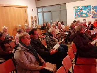 Stimmungsvolles Licht erhellt die evangelische Christuskirche. Doch statt eines Gottesdienstes erwartete die zahlreichen Besucher*innen am Montag, den 13.02.2023, ein buntes musikalisches Programm zum Mitsingen. Bezirkskantor Wolfgang Heilmann mit Band ließ Lieder aus dem „blauen“ Gesangbuch „Wo wir dich loben, wachsen neue Lieder Plus“ erklingen. Zu beschwingten, zum Teil auch tragenden Melodien wurden die Texte gesungen und auch verschiedene Stimmen ausprobiert. Pfarrer Jan Meckler ergänzte Gebet und Segen. Der gelungene Mit-Sing-Abend wurde mit einem gemütlichen Beisammensein bei spritzigen Getränken und Knabbereien beschlossen. Wir freuen uns, dass so viele Gesangsfreund*innen der Einladung gefolgt sind und bedanken uns an dieser Stelle noch einmal bei allen Mitwirkenden! Hat es Ihnen gefallen? Dann sind Sie herzlich zur Chorprobe (montags ab 19:30 Uhr) eingeladen.