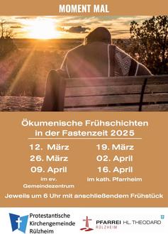 Wir bieten an: A) Interessierte bekommen ab dem 5. März einen wöchentlichen „Fastenbrief“ mit Impulsen zur eigenen Betrachtung (per Email oder per Post) B) Angebot eines individuellen persönlichen Gesprächs. Hier können persönliche Anliegen vertraulich besprochen werden (telefonisch oder persönlich). Rückfragen zu unserem Angebot an: Reinhard Kalker, Pfarrer i.R. und Geistlicher Begleiter Mail: reinhard.kalker@evkirchepfalz.de Telefon: 07271 / 98 16 151. Anmeldung bitte bis zum 26. Februar an das Katholische oder Protestantische Pfarramt Rülzheim Kath. Pfarramt Rülzheim, Am Deutschordensplatz 12 Telefon: +49 (0) 72 72 / 91 95 27 Telefax: +49 (0) 72 72 / 91 95 09 Email: pfarramt.ruelzheim@bistum-speyer.de Prot. Pfarramt Rülzheim Hoppelgasse 35, Tel. 07272 / 8443 Email: pfarramt.ruelzheim@evkirchepfalz.de
