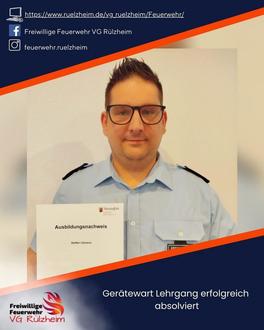 Steffen Clemens (Einheit Rülzheim) hat in dieser Woche am Gerätewart Lehrgang am LFBK teilgenommen und diesen erfolgreich bestanden. Ziel des Lehrgangs ist die Befähigung zur Wartung, Instandhaltung, Pflege und Prüfung der Beladung von Feuerwehrfahrzeugen und der persönlichen Ausrüstung. Herzlichen Glückwunsch zum bestandenen Lehrgang!
