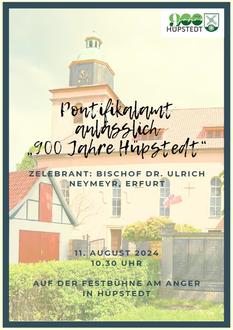 | +19.SONNTAG i.J. Koll. f. seelsorgl. Aufgaben bzw. Kindergarten der Gemeinde (Bistum) | 11.08.2024 | 10.30 | Pontifikalamt zum 900. Ortsjubiläum Anger Hüpstedt mit Bischof Dr. Ulrich Neymeyr | |