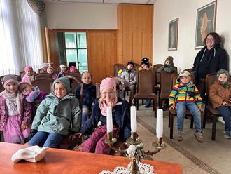 Andreas Fernkorn berichtete den Kindern aus seinem Alltag, erklärte ihnen etliches zur Stadt Dingelstädt, zum Beispiel, dass der Fluss „Unstrut“ in Kefferhausen entspringt.