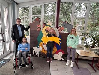 Am 30.11.23 hat Bürgermeister Andreas Fernkorn gemeinsam mit einigen Frauen der Kreativgruppe sowie Monika Dölle und Josef Vockrodt vom Seniorenbeirat der Stadt Dingelstädt die St. Franziskusschule und das Wohnheim „Heilige Louise“ besucht.