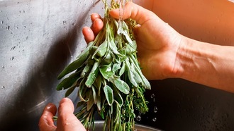"Schneiden Sie nur das Beste von Ihren Kräutern zum Trocknen, also unversehrte, gut entwickelte Triebspitzen", so die Pflanzenexpertin. Achten Sie darauf, dass die Pflanzen nicht allzu feucht sind, da sie sonst schimmeln können. Außerdem sind sie dann weniger würzig. Waschen Sie die Kräuter daher nicht. Besser: ausschütteln und so von Staub und Schmutz befreien.