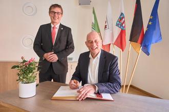 Wolfgang Tiefensee durfte sich im Goldenen Buch der Stadt Dingelstädt eintragen.
