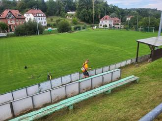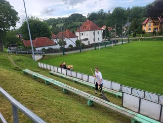 Frische Farbe kam auch zum Einsatz. So wurde die unansehnlich gewordene überdachte Abstellmöglichkeit für Eckfahnen und Kreidemaschine gestrichen. Für die Gästekabine gab es gleichfalls einen frischen Anstrich. Und damit das Samstagsspiel in einem vorschriftsmäßigen Rahmen absolviert werden konnte, schnappte sich der Platzverantwortliche im Ehrenamt, Tobias Scheffel, auch noch die Kreidemaschine und zog frische Linien auf dem bestens präparierten Rasenplatz.