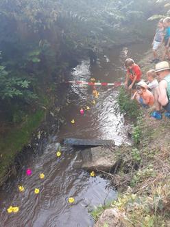 Die Kinder und Gäste konnten im Vorfeld eine kleine Ente erwerben und diese nach Lust und Laune anmalen. Dank der Freiwilligen Feuerwehr Niederndorf wurden diese dann in den Erlbach unweit des Kindergartens eingesetzt und schwammen dann wieder in Richtung des Kindergartens zurück. Es war wirklich ein Kopf an Kopf rennen.