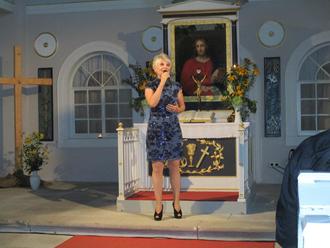 Die sympathische Sängerin feiert in diesem Jahr ihr 40. Bühnenjubiläum, das 40. Studioalbum erscheint im Oktober und eine große Tournee mit ihren Erfolgstiteln wird es auch geben. Für ihren Auftritt in unserer Kirche hatte sie sich für ein Balladenprogramm unter dem Titel „Lieder für die Seele“ entschieden. Linda Feller ist bekannt für ihre stimmungs- und schwungvollen Songs, mit denen sie die Herzen ihrer Fans erobert, doch die leisen und nachdenklichen Lieder kann sie genauso gekonnt interpretieren. Damit sang sich die aus Ohrdruf in Thüringen stammende Künstlerin vom ersten Lied bis zu den beiden Zugaben am Schluss in die Herzen und Seelen ihrer begeistert mitgehenden Zuhörer.