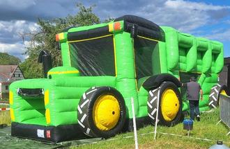 Highlight war unsere XL-Hüpfburg in Traktorform mit Rutsche.