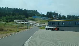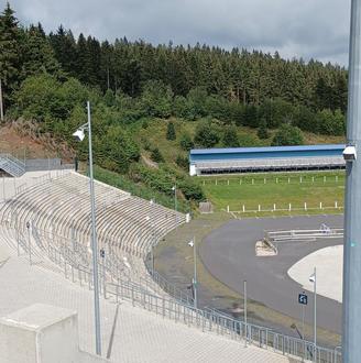 In Oberhof haben wir einen sogenannten „City Guide“ an Bord des Busses begrüßt, der uns mit Ortskenntnis und Humor durch Oberhof gelotst hat. Besonders interessant waren die Sportanlagen.