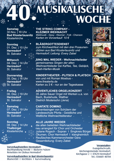 | 19:00 Uhr | Bad Klosterlausnitz | Musikalische Woche: The String Company in der Klosterkirche | |