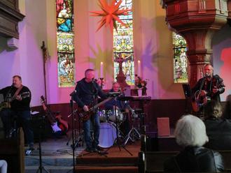 Mit ihrem Konzertprogramm aus Rockmusik und Countrymelodien hat die Heger-Band die Herzen und Seelen des Publikums im Sturm erobert. Vom ersten bis zum letzten Song, unter anderem von Pink Floyd, Bob Dylon, Neil Young, Barclays James Harvest und John Denver gingen die Besucher begeistert mit. Christliche Lieder in deutscher und englischer Sprache, darunter die Eigenkomposition von Uwe Kaselowsky „Alles wird gut“, kamen ebenfalls sehr gut an. Hihglights des Konzerts waren einmal mehr so beliebte und bekannte Ostrocktitel wie „Am Fenster“ von City und „Das Gänselieschen“ der Klaus Renft Combo. Der herzliche Applaus und die Spendenfreude der Zuhörer waren der schönste und verdiente Lohn für die Band.